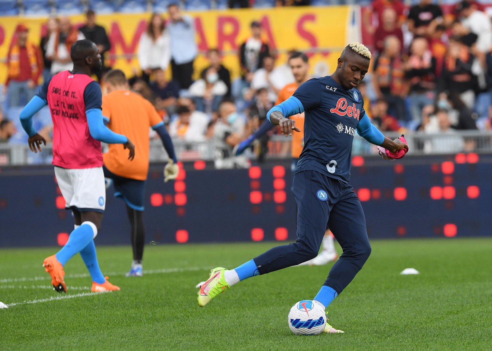 17,54 – Il Napoli in fase di riscaldamento