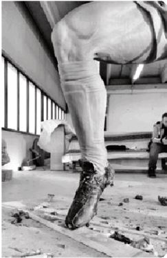 una foglia d’oro. Sulla statua la scritta “Anche io sono napoletano”. L’opera realizzata presso la Fonderia Nolana.