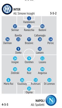 Inter/Napoli: le possibili formazioni secondo “Il Mattino” (Grafico)