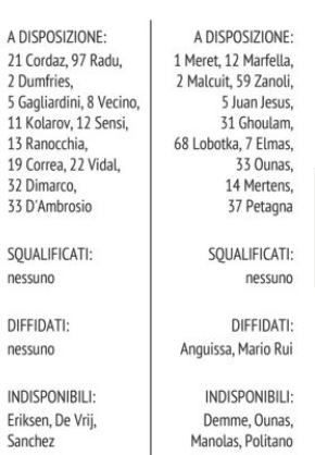 Prove di fuga. Perché la caduta del Milan a Firenze rende il big match con l’Inter occasione unica di prendere il volo. Peccato per quella macchia sul vestito bianco, la rottura di scatole che Luciano Spalletti dice di aver messo nel conto ma che invece dà davvero fastidio a poche ore da Inter-Napoli. Anche perché un po’ scombussola i piani tattici del tecnico azzurro. Con tutto, poi, il corollario di apprensioni, patemi e batticuore. Fontee grafici (Il Mattino)