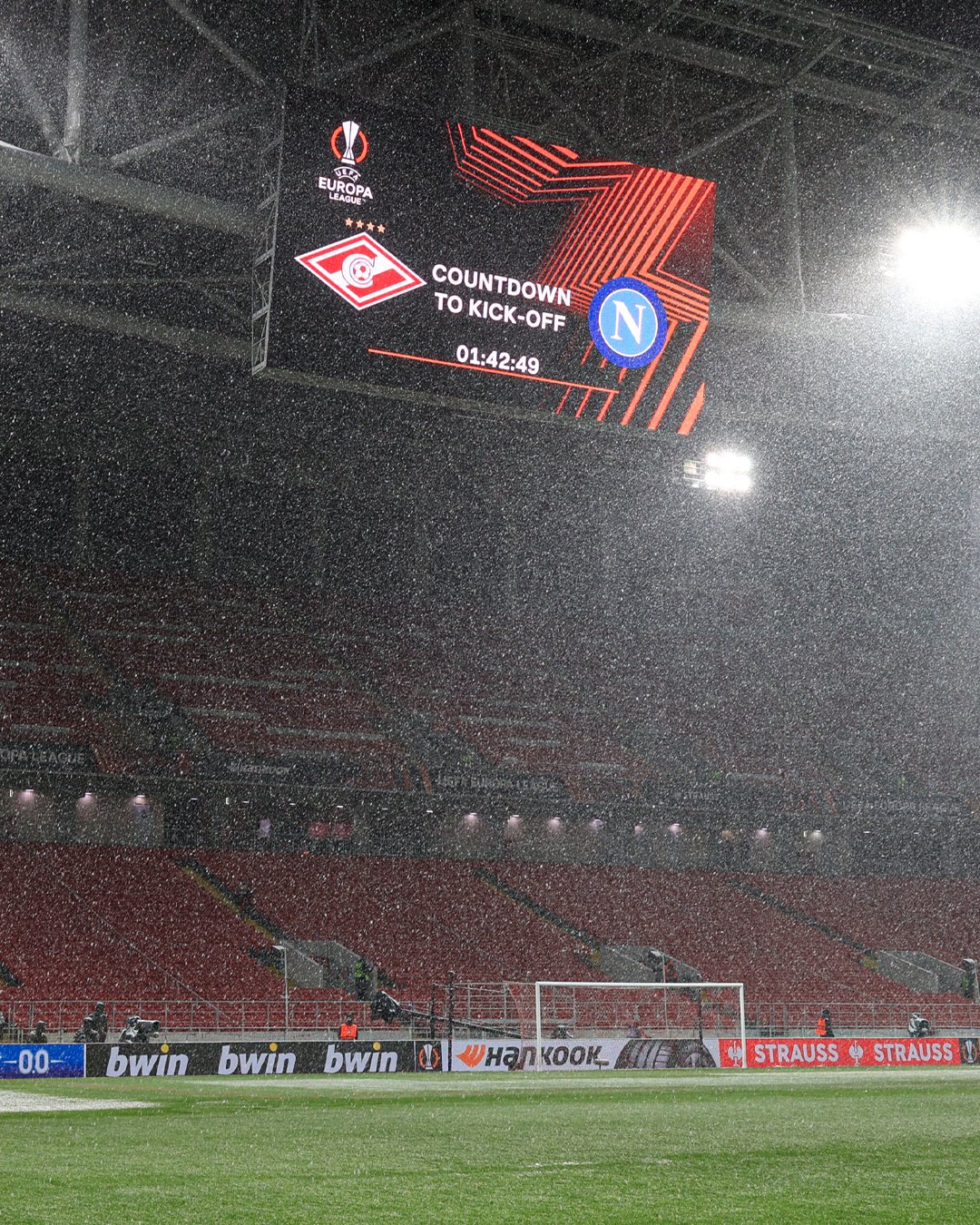 15,23 – Neve a Mosca in vista della sfida tra i padroni di casa dello Spartak e il Napoli, quinta gara del girone C di Europa League