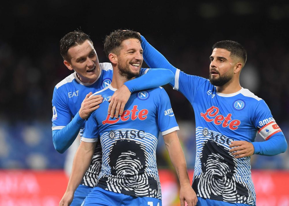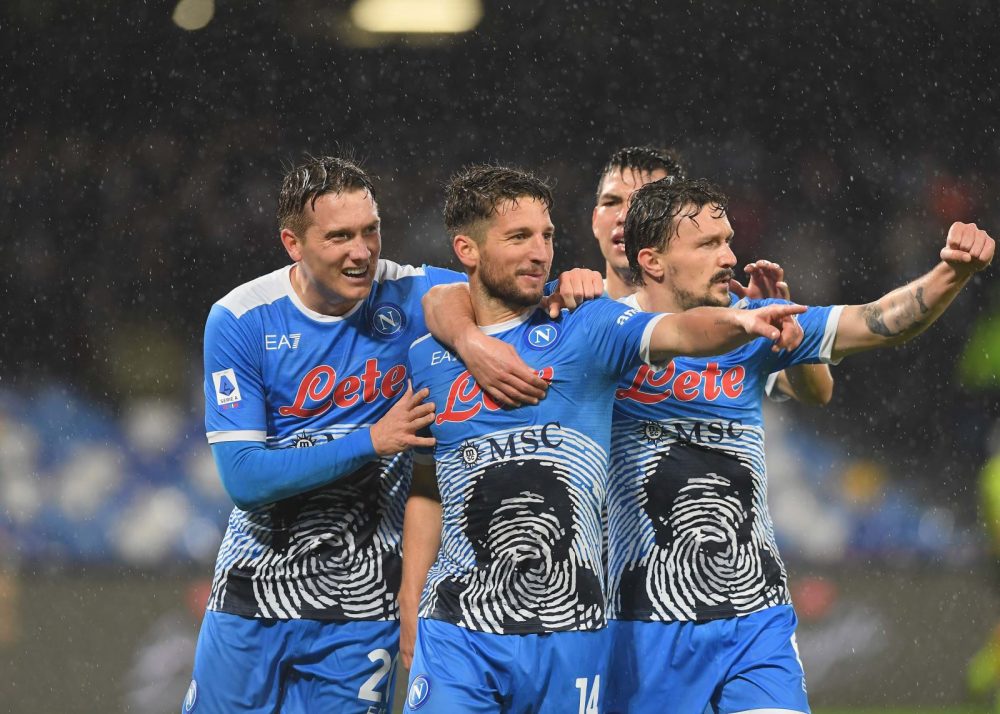 Volare oh oh. Nella notte di Diego, le meraviglie di Mertens incantano e portano gli azzurri al primo posto in solitaria. La notte quasi perfetta. Incanta il Napoli che pur senza Osimhen (e anche Anguissa) e pur dovendo reinventare il modo di attaccare con quel piccolo diavolo di un belga là davanti, è straripante. La Lazio fatica perché Spalletti pian piano cuce addosso la partita che voleva: difesa intelligente, centrocampo di palleggiatori e di rapidi verticalizzatori e così i centrocampisti laziali vengono spenti nel cervello, disinnescati. Il Napoli mette in ginocchio il suo vecchio maestro che alla Lazio è ancora distante anni luce a (ri)creare quella Grande bellezza. E la gestione della ripresa è un altro fiore all’occhiello: mai una sbandata, un controllo totale del pallone e dei sentimenti.