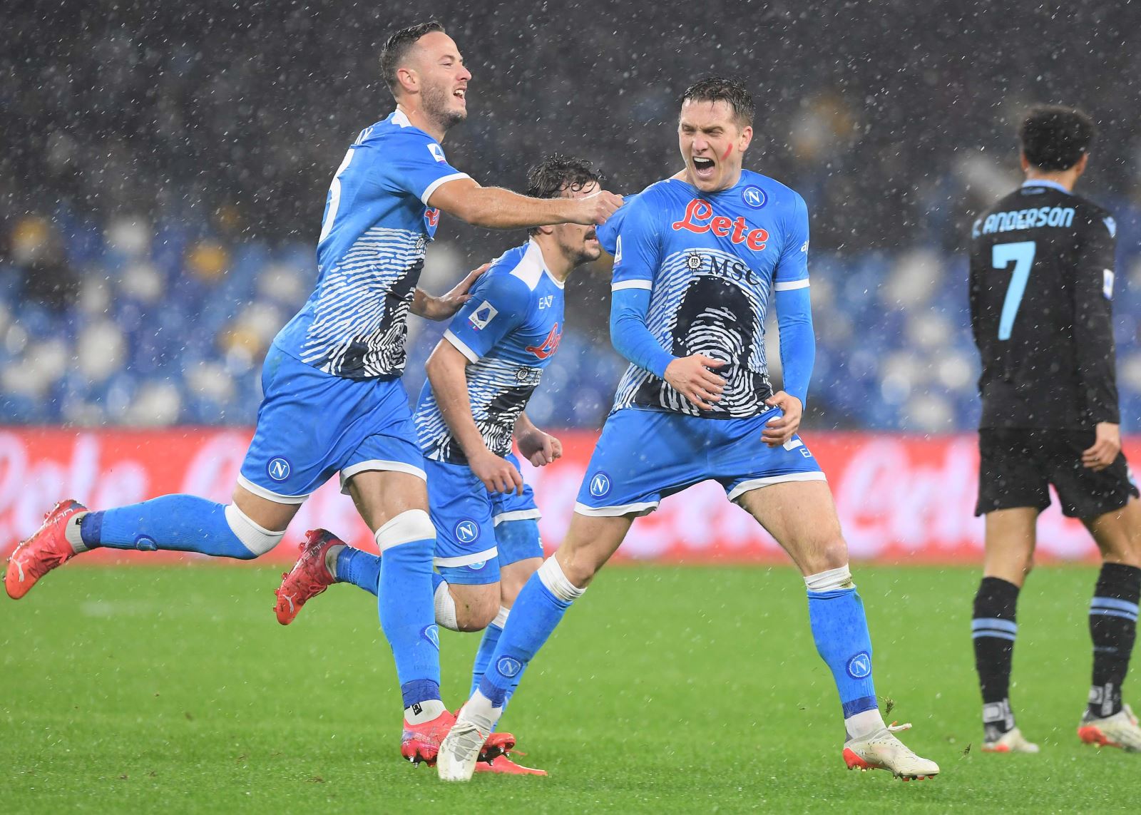 I colpi di genio nella notte di D10s. In linea di galleggiamento tra Acerbi e Luiz Felipe: difende il pallone in occasione del gol di Zielinski, sfodera un pazzesco pezzo di bravura per il raddoppio. Poi, la gemma assoluta: testa bassa, tanto non ha bisogno di prendere la mira, sa già dove calcerà. Destro dal limite, bum.