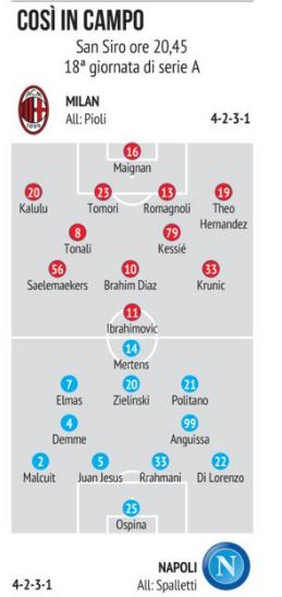Milan/Napoli (Formazioni): “Il Mattino” pubblica le sue possibili formazioni