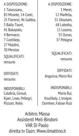 Così Il Mattino immagina le due formazioni falcidiate da numerose assenze