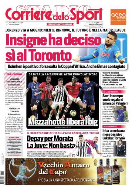 Rassegna stampa del 31 dicembre. Prime pagine sportive