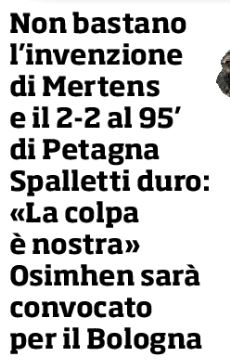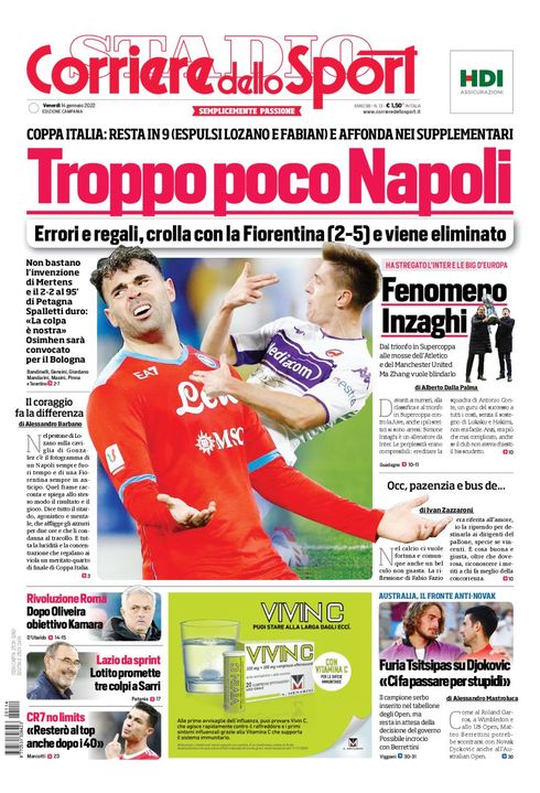 NewsCalcioIn Evidenza CdS Edizione Campania – “TROPPO POCO NAPOLI”. Non basta la magia di Mertens By Giuseppe Sacco il Gen 14, 2022 - 09:00:04 0 Condividi In Prima pagina e nel profilo interno del Cds edizione della Campania Factory della Comunicazione CalcioCoppaFiorentinaNapoli 0 Condividi FacebookTwitterGoogle+ReddItWhatsAppPinterestE-mail