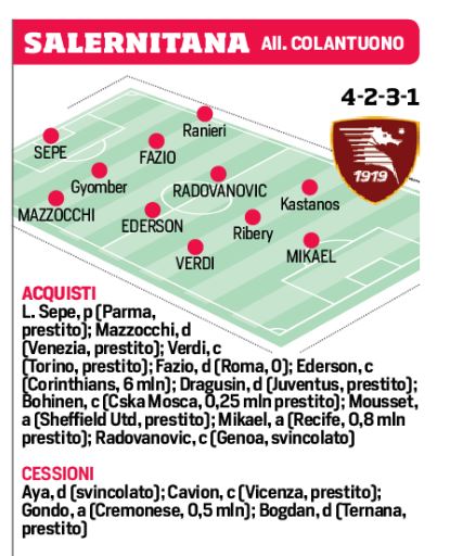 [Grafici] Napoli e Salernitana dopo acquisti e cessioni
