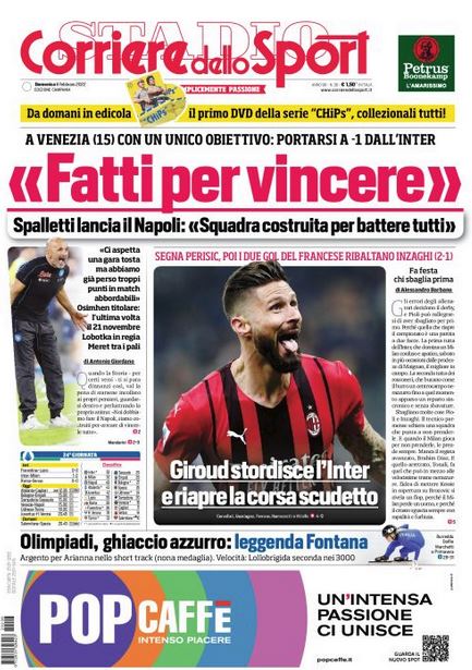 NewsCalcioRassegna Stampa Cds Campania – “FATTI PER VINCERE”. Spalletti: “Squadra costruita per battere tutti” By Giuseppe Sacco il Feb 6, 2022 - 08:00:34 0 Condividi Così in prima pagine e nel profilo interno del Cds edizione della Campania Factory della Comunicazione CalcioNapoliSpalletti 0 Condividi FacebookTwitterGoogle+ReddItWhatsAppPinterestE-mail