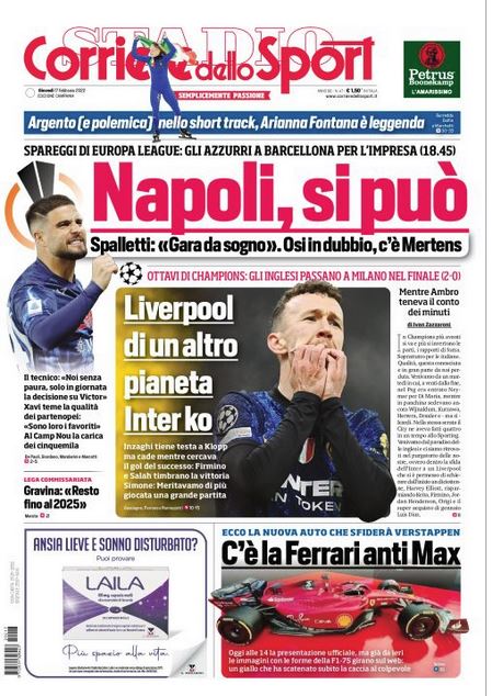 NewsCalcioIn Evidenza CdS Campania – ” NAPOLI SI PUO’ “. Spalletti: “Gara da sogno” By Giuseppe Sacco il Feb 17, 2022 - 08:00:03 0 Condividi In primo piano e nel profilo interno dell’ edizione della Campania Factory della Comunicazione BarcellonaCalcioEuropaNapoli 0 Condividi FacebookTwitterGoogle+ReddItWhatsAppPinterestE-mail