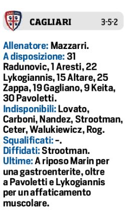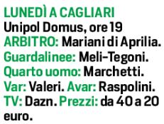 Lunedì all’Unipol Domus, fischio d’inizio alle ore 19,00, si giocherà la sfida tra il Cagliari e il Napoli nel più classico testa-coda. Per l’ex Mazzarri diverse le assenze, il modulo è il classico 3-5-2, con Gaston Pereiro al fianco di Joao Pedro, panchina per l’altro ex Pavoletti. In casa azzurra, c’è da capire le condizioni di Zielinski e Fabian Ruiz, assente invece Anguissa. In attacco spazio ad Osimhen, occhio però a Mertens in rampa di lancio.