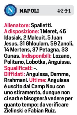 In casa azzurra, c'è da capire le condizioni di Zielinski e Fabian Ruiz