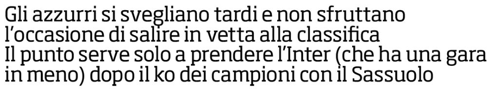 NewsCalcioIn Evidenza CdS Campania – “NAPOLI SPENTO, OSI LO TIENE SU”. Scudetto apertissimo, tre club in due punti By Giuseppe Sacco il Feb 22, 2022 - 08:00:26 0 Condividi In prima pagina e nel profilo interno del Cds edizione della Campania Factory della Comunicazione CaglairiCampaniaCdSNapoli 0 Condividi FacebookTwitterGoogle+ReddItWhatsAppPinterestE-mail