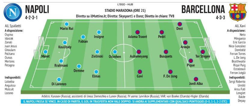 “Il Mattino” mette in campo Napoli e Barcellona. Le formazioni e il grafico