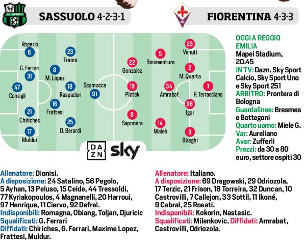 NewsCalcioRassegna Stampa Serie A – Ore 20,45: Sassuolo/Fiorentina, il Cds dà le possibili formazioni By Giuseppe Sacco il Feb 26, 2022 - 19:00:02 0 Condividi Sia Sassuolo che Fiorentina in cerca di un posto in Europa, potrebbe essere una gara spumeggiante Factory della Comunicazione FiorentinaFormazioniSassuolo 0 Condividi FacebookTwitterGoogle+ReddItWhatsAppPinterestE-mail