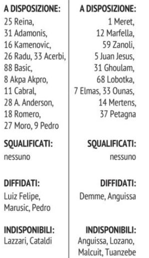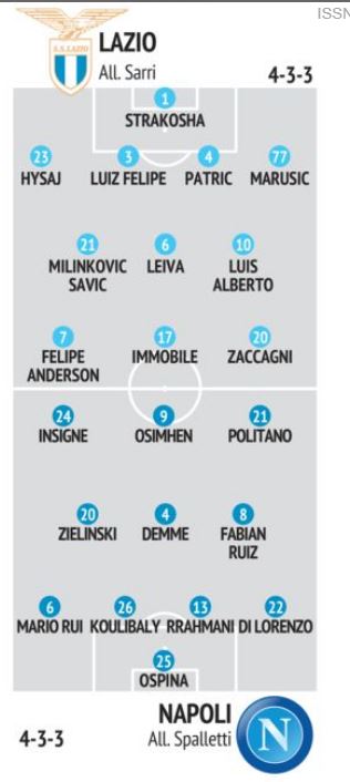 [Grafico] Lazio/Napoli: sfida tra bomber. “Il Mattino” propone le sue formazioni