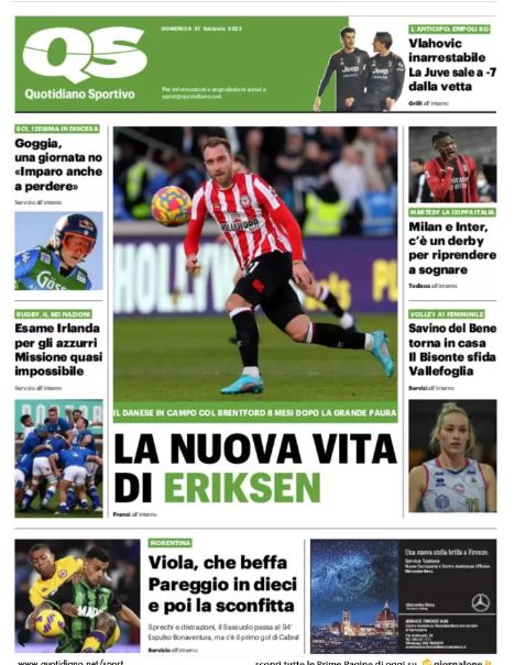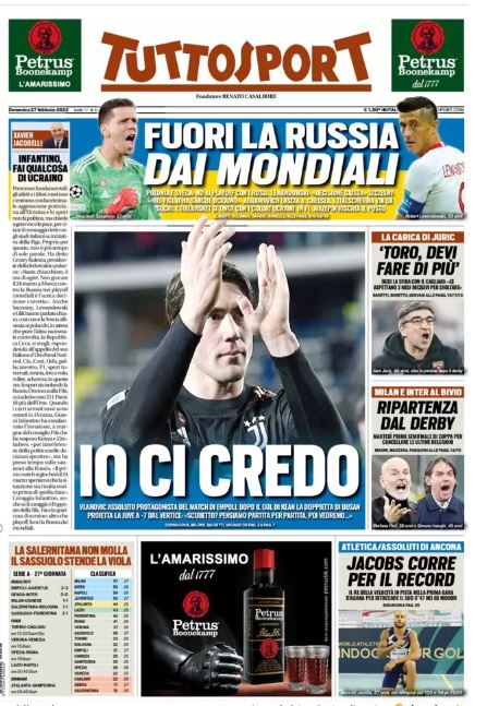 NewsCalcioIn Evidenza Rassegna stampa del 27 febbraio – “PRIME PAGINE SPORTIVE” By Giuseppe Sacco il Feb 27, 2022 - 07:20:45 0 Condividi In primo piano sui principali quotidiani sportivi nazionali Factory della Comunicazione CalcioNapoliRassegnaStampa 0 Condividi FacebookTwitterGoogle+ReddItWhatsAppPinterestE-mail