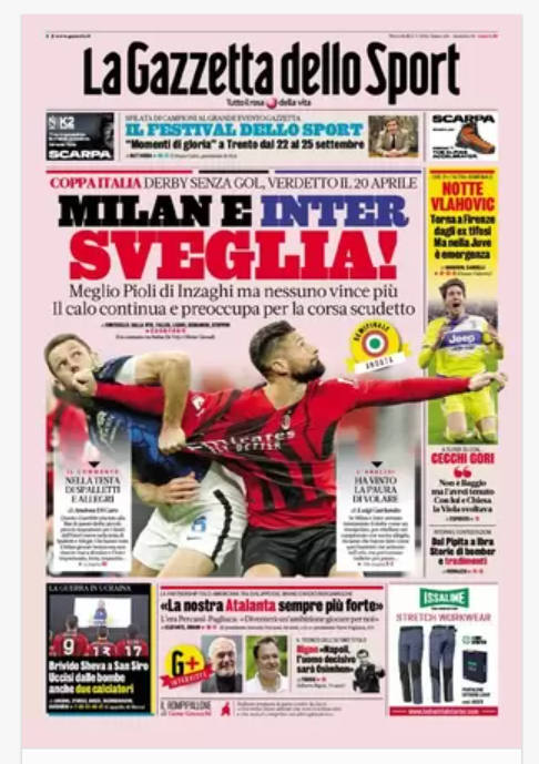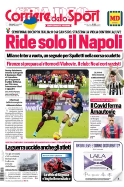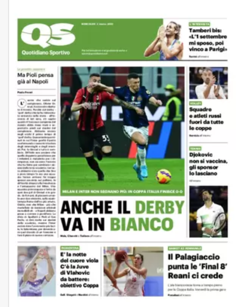 NewsCalcioIn Evidenza Rassegna stampa del 2 marzo. “PRIME PAGINE SPORTIVE” By Alessandro Sacco il Mar 2, 2022 - 07:20:52 0 Condividi In primo piano sui principali quotidiani sportivi nazionali Factory della Comunicazione CalcioNapoliRassegnaStampa 0 Condividi FacebookTwitterGoogle+ReddItWhatsAppPinterestE-mail