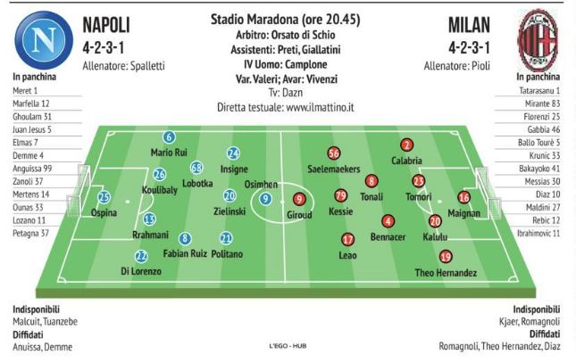 “Il Mattino” mette in campo Napoli e Milan [Formazioni]