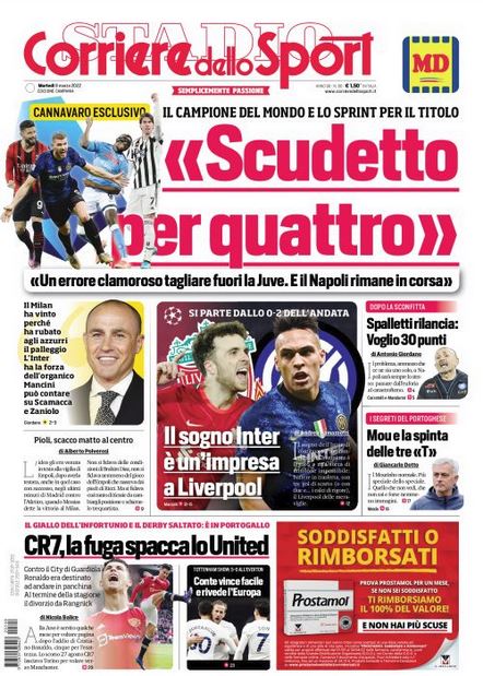 NewsCalcioIn Evidenza CdS Campania – ” Cannavaro: “SCUDETTO PER QUATTRO”. Occhio ai bianconeri! By Giuseppe Sacco il Mar 8, 2022 - 08:00:38 0 Condividi In primo piano e nel profilo interno del Cds edizione della Campania Factory della Comunicazione CalcioCampaniaNapoliRassegna 0 Condividi FacebookTwitterGoogle+ReddItWhatsAppPinterestE-mail
