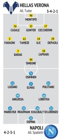Verona-Napoli, probabili formazioni: Spalletti cambia, ecco Elmas e Lozano (Grafico)