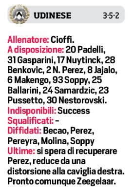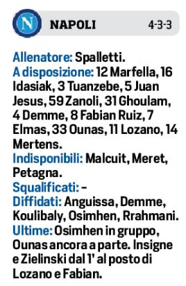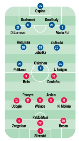 [Formazioni] Napoli/Udinese: due novità per gli azzurri. Modulo “prudente” per i friulani
