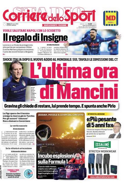 NewsCalcioIn Evidenza Rassegna stampa del 26 marzo – “PRIME PAGINE SPORTIVE” By Giuseppe Sacco il Mar 26, 2022 - 07:20:42 0 Condividi In primo piano sui principali quotidiani sportivi nazionali Factory della Comunicazione CalcioNapoliRassegnaspampa 0 Condividi FacebookTwitterGoogle+ReddItWhatsAppPinterestE-mail