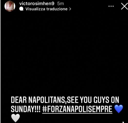Osimhen Scrive ai tifosi in merito al suo infortunio: «Napoletani, ci vediamo domenica»