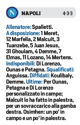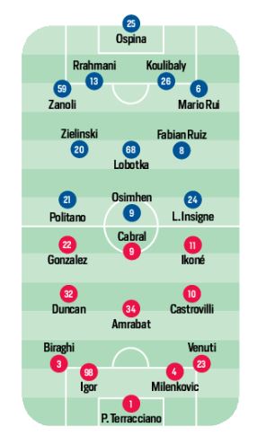 Domenica al “Maradona”, fischio d’inizio alle ore 15,00, davanti a quasi 55 mila spettatori, si giocherà Napoli-Fiorentina. Per mister Spalletti la buona notizia è il recupero di Osimhen, che però resta in ballottaggio con Mertens. Per il resto sarà Zielinski il sostituto di Anguissa, mentre a destra ancora fiducia al classe 2000 Zanoli. In casa viola diverse le assenze, Torreira per squalifica, infortunati invece Odriozola e Bonaventura. Amrabat in mediana, mentre in attacco Cabral, con ai alti Ikonè e Nico Gonzales.