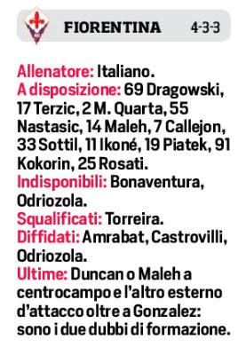 [Formazioni] Napoli-Fiorentina, bis a destra per Zanoli. Due ballottaggi per Italiano