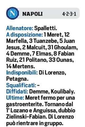 Lunedì alle ore 19,00, allo stadio “Maradona” si giocherà il Derby del Sole, tra il Napoli e la Roma, valevole per la trentatreesima di campionato. Per Luciano Spalletti importanti recuperi, oltre a Malcuit ed Ounas, anche Fabian Ruiz e Osimhen. Out ancora Di Lorenzo e Petagna. Per il resto due novità, rispetto alla Fiorentina, Lozano al posto di Politano e Anguissa ritorno dopo la squalifica contro i viola. In casa giallorossa Mourinho potrebbe rilanciare in mezzo al campo Sergio Olivera, mentre per il resto lo stesso 11 che ha battuto ieri sera il Bodoe Glimt.