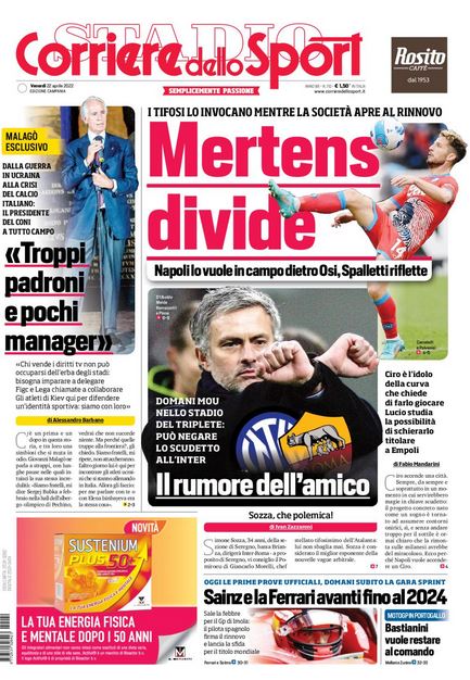 NewsCalcioIn Evidenza Rassegna stampa del 22 aprile – “PRIME PAGINE SPORTIVE” By Giuseppe Sacco il Apr 22, 2022 - 07:20:51 0 Condividi In prima pagina sui principali quotidiani sportivi nazionali Factory della Comunicazione CalcioNapoliRassegnaStampa 0 Condividi FacebookTwitterGoogle+ReddItWhatsAppPinterestE-mail