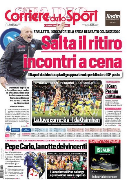 CalcioIn EvidenzaNews Cds Campania – “SALTA IL RITIRO”. Niente linea dura, passo indietro della società By Giuseppe Sacco il Apr 26, 2022 - 08:00:34 0 Condividi In prima pagina e nel profilo interno del Cds edizione della Campania Factory della Comunicazione CalcioDe LaurentiisNapoliritiro 0 Condividi FacebookTwitterGoogle+ReddItWhatsAppPinterestE-mail