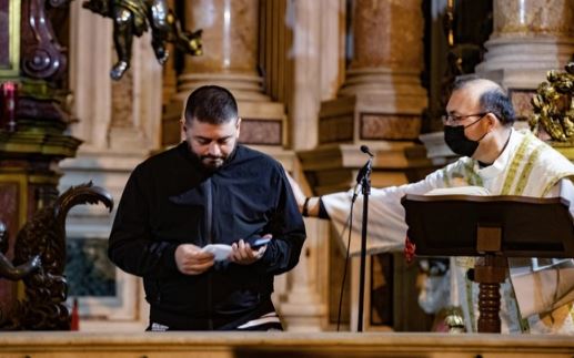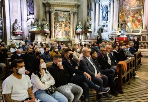 Nella Cappella San Gennaro all’interno del Duomo di Napoli messa in ricordo di Diego Armando Maradona nel 35esimo anniversario del primo scudetto, vinto il 10 maggio 1987.