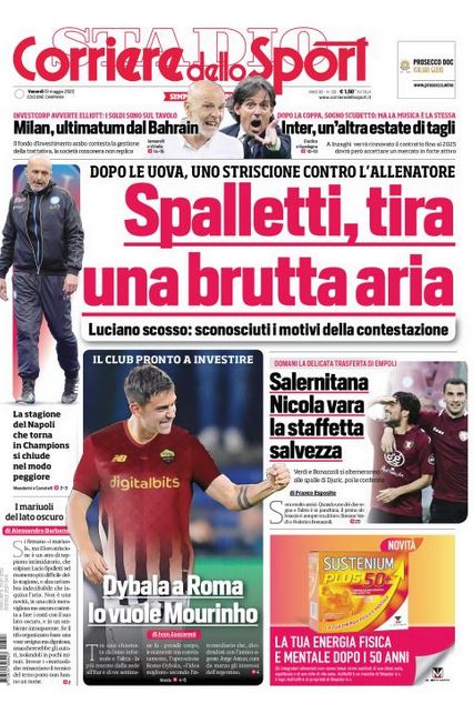 Rassegna stampa del 13 maggio. “PRIME PAGINE SPORTIVE”