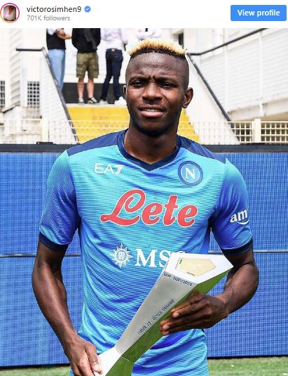 Prima del fischio d’inizio di Spezia-Napoli, Victor Osimhen ha ricevuto il premio di miglior Under 23 di questa stagione di Serie A. Un riconoscimento da celebrare anche via social: