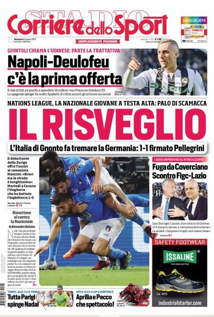 NewsCalcioIn Evidenza Corriere Sport Campania – “Napoli/Deulofeu, c’è la prima offerta”. Per Østigård garantisce Onofri! By Giuseppe Sacco il Giu 5, 2022 - 08:00:51 0 Condividi Corriere – In prima pagina e nel profilo interno del Cds edizione della Campania Factory della Comunicazione CalcioDeulofeuGiuntoliNapoli 0 Condividi FacebookTwitterGoogle+ReddItWhatsAppPinterestE-mail