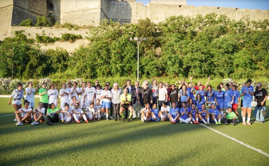 Una festa che meglio non poteva riuscire. I dieci anni del Napoli Femminile dalla prima promozione in A sono stati un tripudio di emozioni, ricordi, sfrenata allegria e anche calcio. Un evento organizzato con dovizia di particolari dal gruppo fondatore della società azzurra con in primis l’ex direttore generale Italo Palmieri, coadiuvato dai suoi più stretti collaboratori, come il fido segretario Lello Riccio, il responsabile del settore giovanile, Nino Catalano, il preparatore atletico storico Felice Di Maio, il fisioterapista Gianluca Santoriello, gli allenatori Gennaro Cavallino, Mimmo Paesano, Alessandro Riccio, Peppe Egizio, Marco Mazziotti, Kikko Aielli, Kulia Batashova, e il responsabile dell’area sanitaria, il professore Carlo Ruosi. E poi c’erano loro, le protagoniste di questa emozionante scalata dalle serie minori sino al massimo torneo. A partire da Valeria Pirone, vera icona del calcio femminile partenopeo, e poi, Valentina Esposito, Paola Di Marino, Emanuela Schioppo, Ramona De Rosa, Fabiana Pastorini, Marcella Bentivoglio, Rosaria Fiengo, Azzurra Massa, Milena Gesuele. Ma la sorpresa è stata la presenza di un bel po’ di ragazze venute da tutta Italia; tra le altre Gioia Masia, Alice Pignagnoli, Michela Franco, Sabina Radu, Antonella Morra, Silvia Vivirito, Maria Caramia. Insomma una festa coi fiocchi. Prima del match tutte schierate a centrocampo e un’esplosione di petardi e razzi da finale Champions. Poi il match a ranghi misti vinto dalle blu capitanate da Valentina Esposito che si sono portate a casa la Coppa Gais dedicata al compianto scopritore di tante ragazze presenti all’evento, consegnata di persona dal fratello Gianni. E a seguire, ai Fondi di Baia prima la cena, poi le premiazioni dei capitani storici, e dulcis in fundo, il concerto di Monica Sarnelli, e per concludere il dj set di Daniele Decibel Bellini che ha scatenato tutto il pubblico presente. Tra le presenze gli allenatori, Paolo Specchia e Bruno Di Lauro, gli ex calciatori Pino Liberati e Luciano Stella, il dottore Tommaso Ricozzi, i dirigenti Pierino Scamarca e Luigi La Marca, giornalisti e personaggi del mondo del calcio. Le riprese e le interviste a cura di Alessandro Sacco (Dir con la collaborazione del redattore de ilnapolionline Antonio Pisciotta.