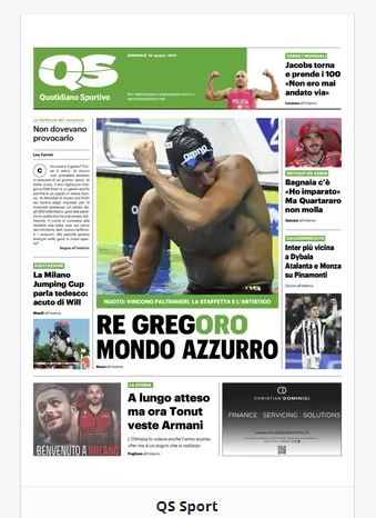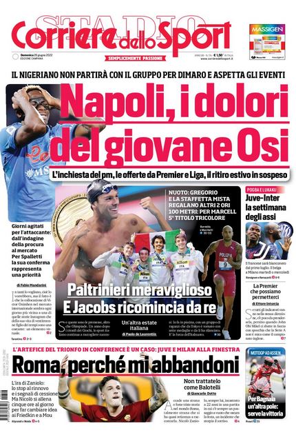 Rassegna stampa del 26 giugno – “PRIME PAGINE SPORTIVE”