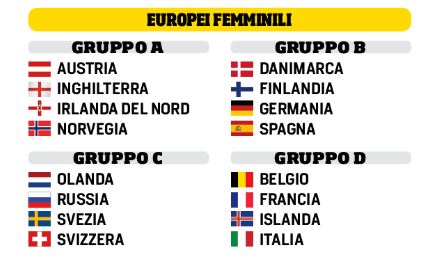 La prima partita del torneo vedrà l’Inghilterra padrona di casa affrontare l’Austria, domani sera alle ore 21 a Manchester (ci sarà il tutto esaurito nella casa dello United), mentre l’Italia (inserita nel gruppo D) esordirà domenica 10 contro la Francia a Rotherham. Al via 16 nazionali, con il Portogallo che aveva perso la doppia finale playoff contro la Russia ma si troverà a sostituirla per i noti motivi legati alla guerra in Ucraina.