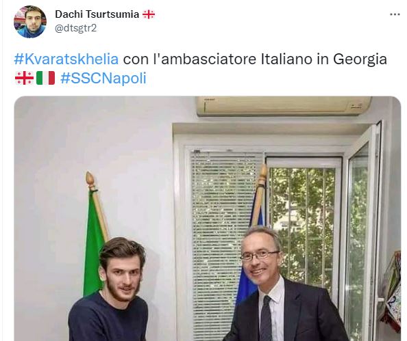 Kvara fa conoscenza dell’Ambasciatore Italiano in Georgia poco prima di partire