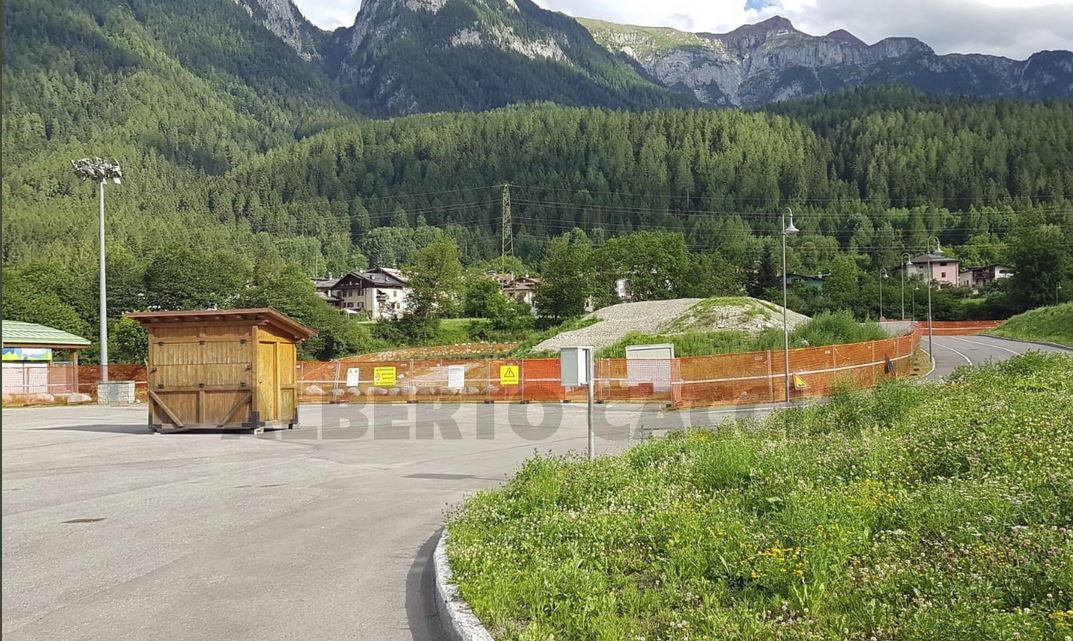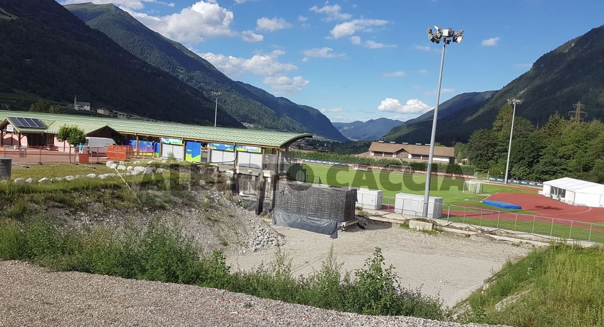Qui #Dimaro. Ancora pieni lavori in corso all’esterno del campo di Carciato a 96 ore dall’arrivo del #Napoli. In costruzione la mini pista di sci, successivamente sarà rimessa in piedi la ormai consueta tribuna aggiuntiva in tubolari alla sinistra degli spalti del Centro Sportivo.