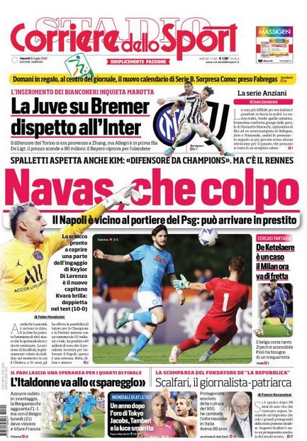 Rassegna stampa del 15 luglio – “PRIME PAGINE SPORTIVE”