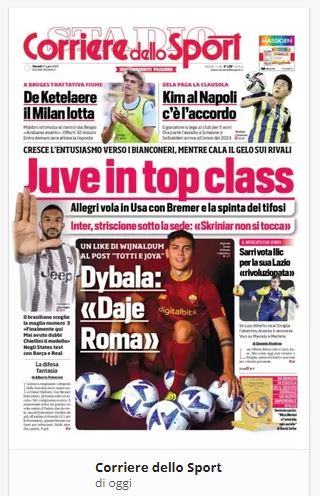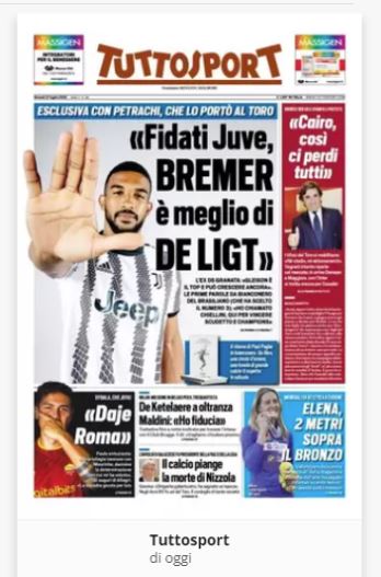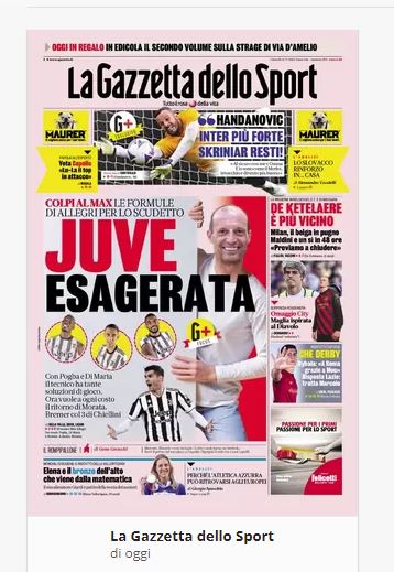 Ecco le prime pagine sportive dei principali quotidiani sportivi nazionali