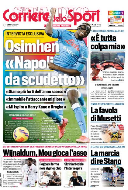 NewsCalcioRassegna Stampa Rassegna stampa del 25 luglio. “PRIME PAGINE SPORTIVE” By Giuseppe Sacco il Lug 25, 2022 - 08:15:37 0 Condividi In primo piano sui principali quotidiani sportivi nazionali Factory della Comunicazione CalcioNapoliRassegnaStampa 0 Condividi FacebookTwitterGoogle+ReddItWhatsAppPinterestE-mail