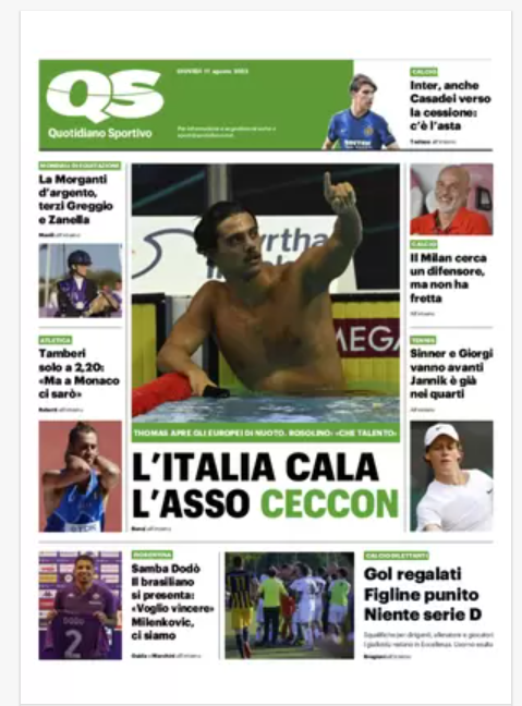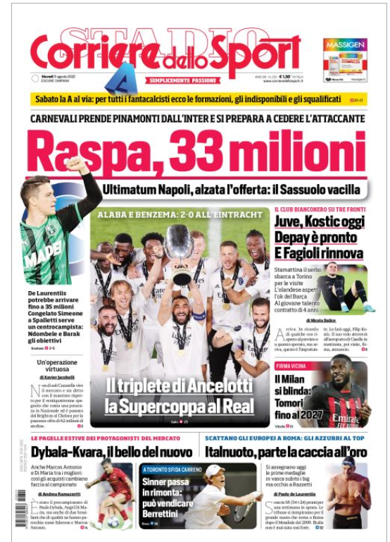 Senza categoriaCalcioNews Rassegna stampa dell’ 11 agosto – “PRIME PAGINE SPORTIVE” By Alessandro Sacco il Ago 11, 2022 - 08:00:25 0 Condividi In primo piano sui principali quotidiani sportivi nazionali Factory della Comunicazione CalcioNapoliRassegnaStampa 0 Condividi FacebookTwitterGoogle+ReddItWhatsAppPinterestE-mail