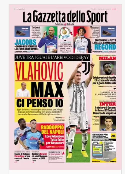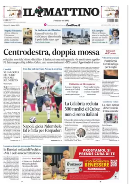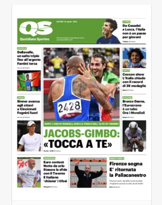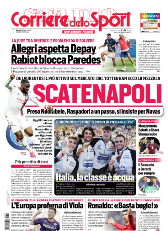 NewsCalcioIn Evidenza Rassegna stampa del 18 agosto. “PRIME PAGINE SPORTIVE” By Alessandro Sacco il Ago 18, 2022 - 08:00:52 0 Condividi In primo paino sui principali quotidiani sportivi nazionali Factory della Comunicazione CalcioNapoliRassegnaStampa 0 Condividi FacebookTwitterGoogle+ReddItWhatsAppPinterestE-mail