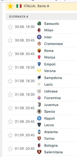 SASSUOLO MILAN Martedì 30/08 h. 18.30
