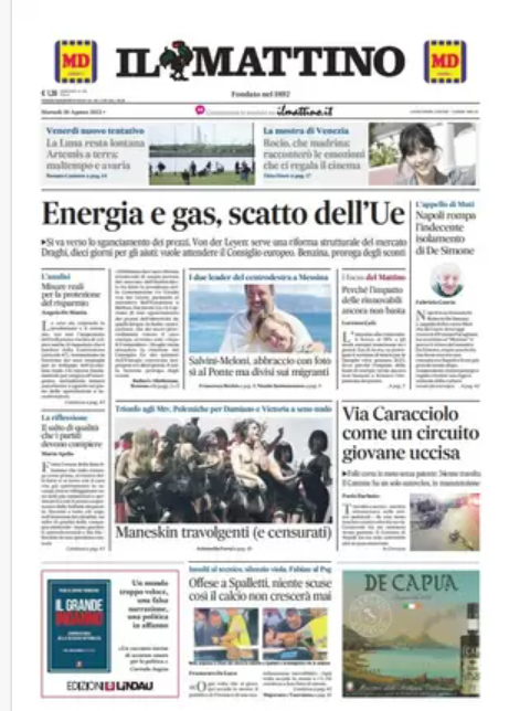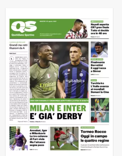 NewsCalcioIn Evidenza Rassegna stampa del 30 agosto – “PRIME PAGINE SPORTIVE” By Alessandro Sacco il Ago 30, 2022 - 08:00:49 0 Condividi In primo piano sui principali quotidiani sportivi nazionali Factory della Comunicazione CalcioNapoliRassegnaStampa 0 Condividi FacebookTwitterGoogle+ReddItWhatsAppPinterestE-mail