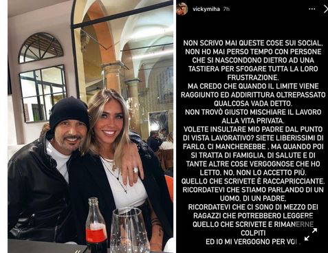 Soprattutto alcune critiche che sono arrivate a Mihajlovic, Viktoria le reputa vergognose. «Volete insultare mio padre dal punto di vista lavorativo? Siete liberissimi di farlo, ci mancherebbe. Ma quando poi si tratta di famiglia, di salute e di tante altre cose vergognose che ho letto, no. Non lo accetto più. Quello che scrivete è raccapricciante»